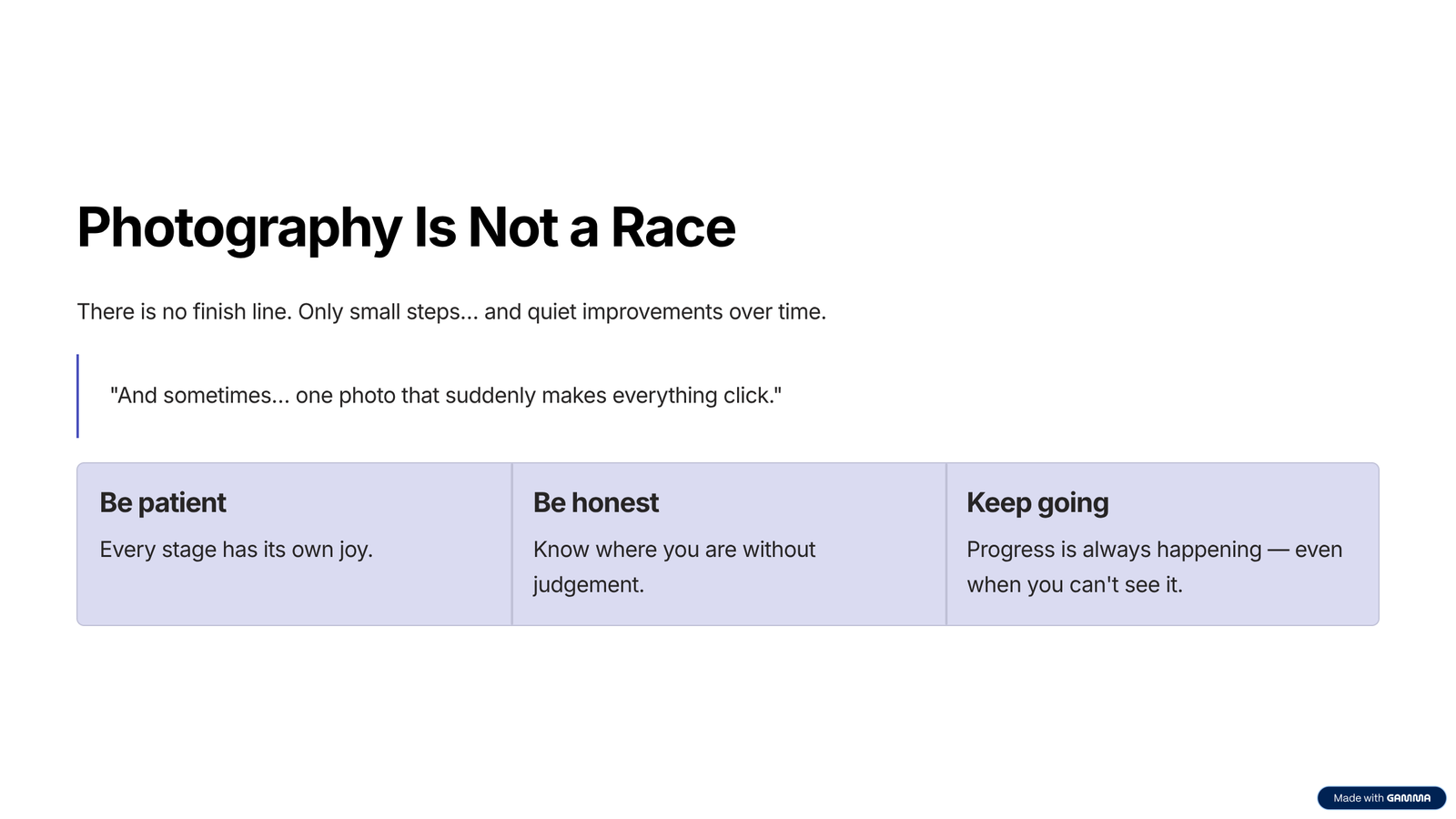Photography is not a race.