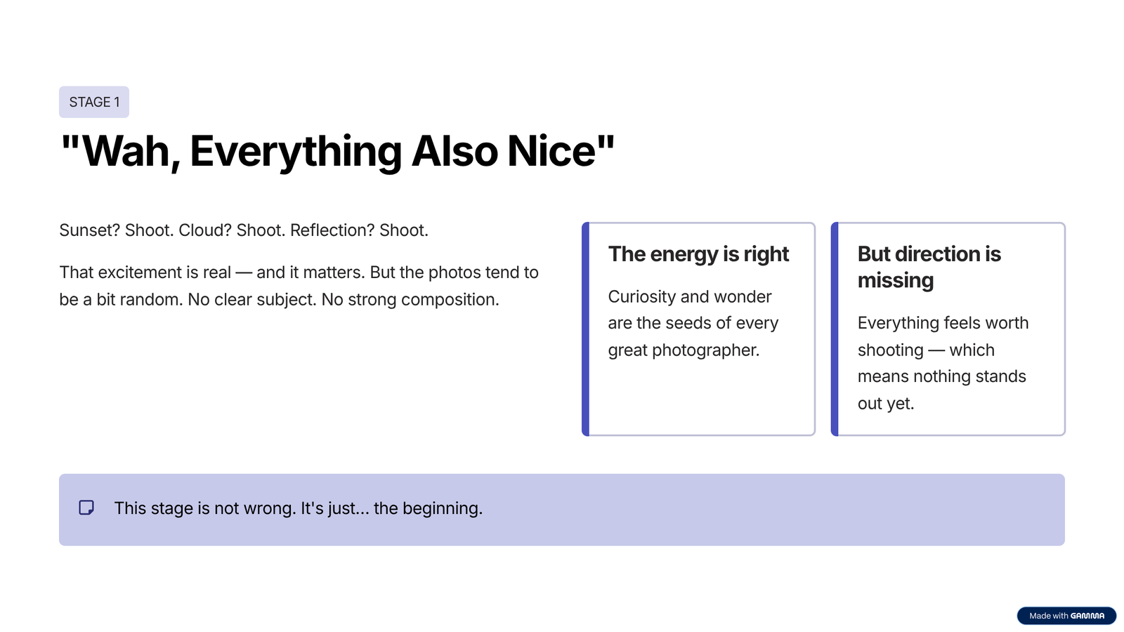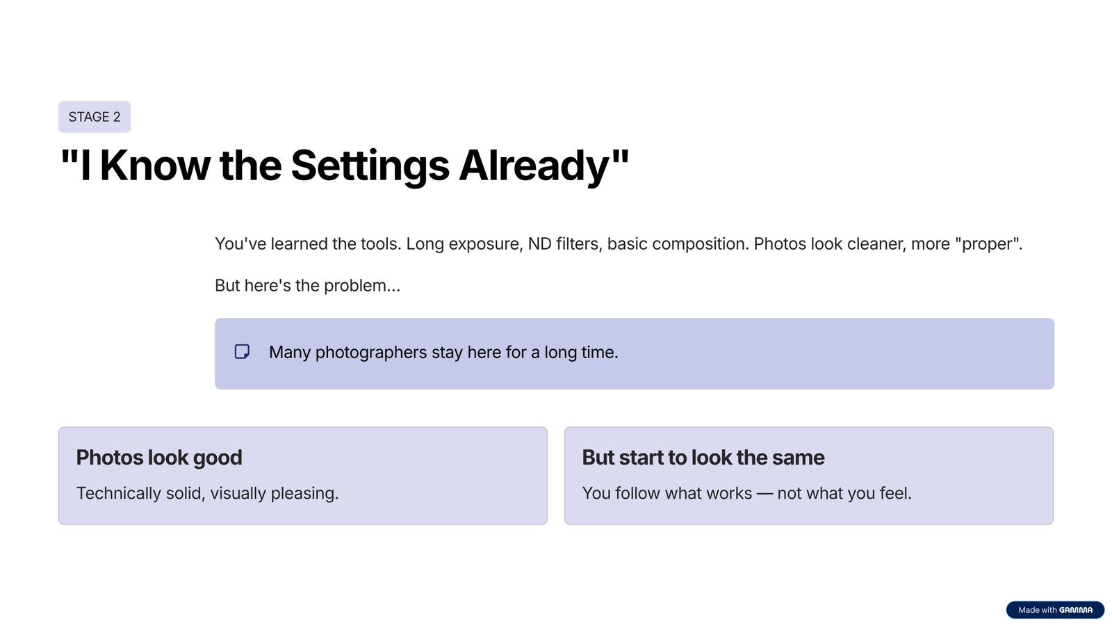 This is where photographers slowly become artists.