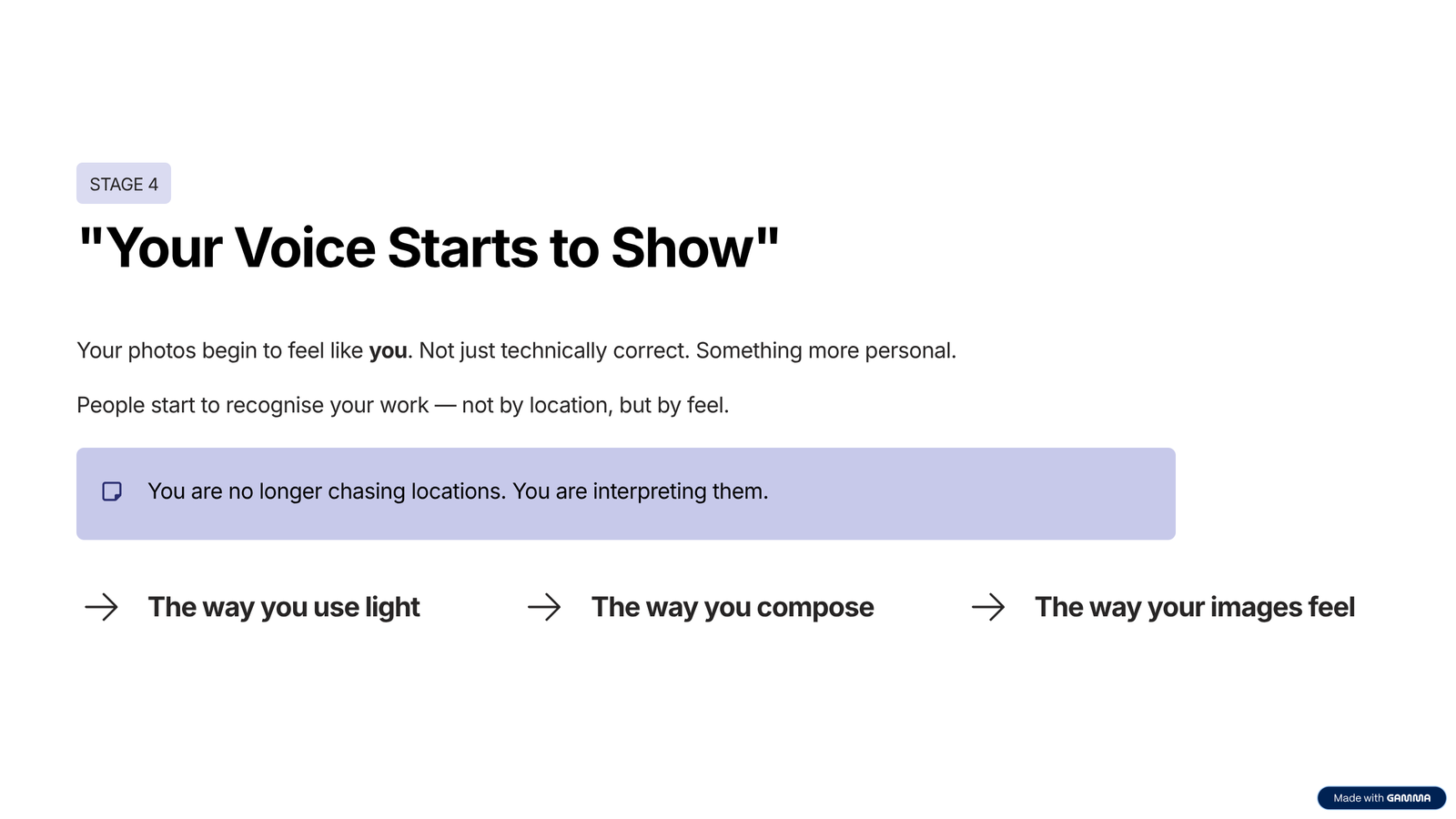 Stage 4 – “Your Voice Starts to Show”