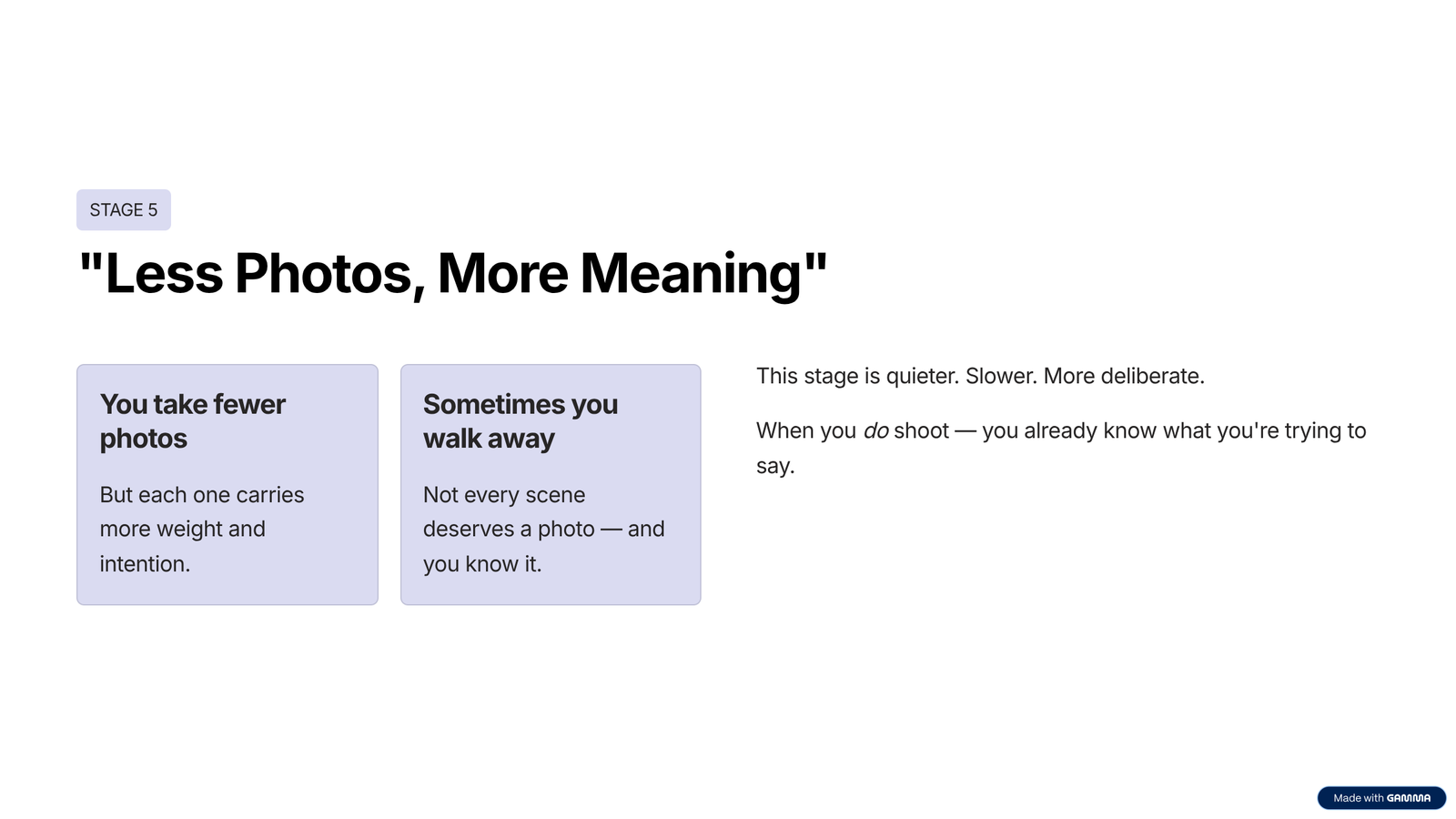 Stage 5 – “Less Photos, More Meaning”
